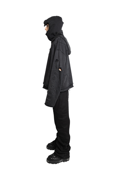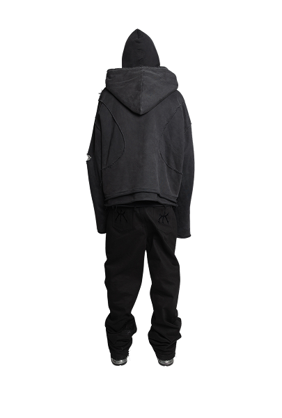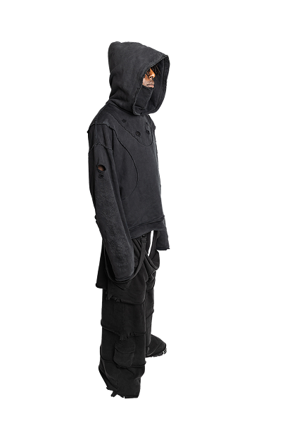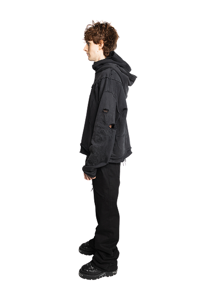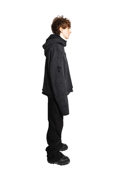 Double-Layer Hoodie – Acid Wash Black