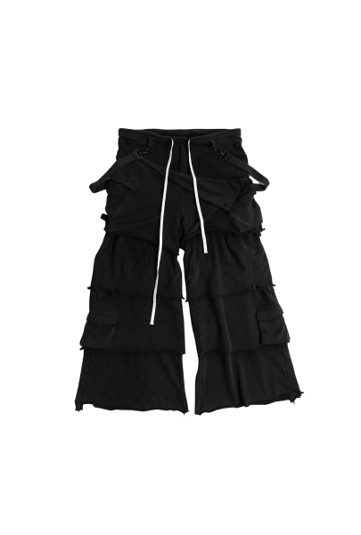 Layered Cotton Track Pants – Acid Wash Black